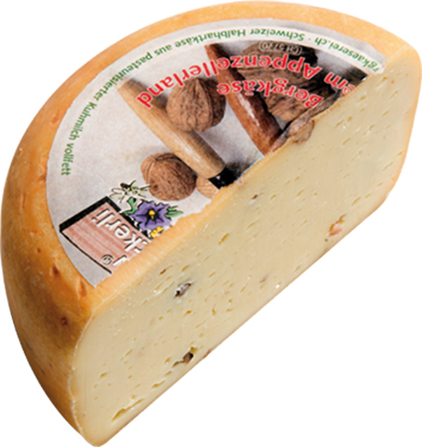 Berg-Mutschli aus dem Appenzellerland. Harmonie von Nussaroma und erfrischendem, crèmig-aromatischem Käse. Mit Liebe zum Produkt handgeschmiert.